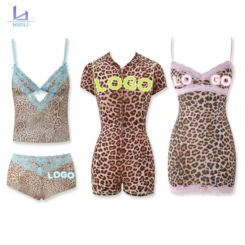 Huili Oem New Trending Breathable Stretch Slimming Fit Matching Set Custom logo Pajamas Leopard Print Loungewear Sets for Women